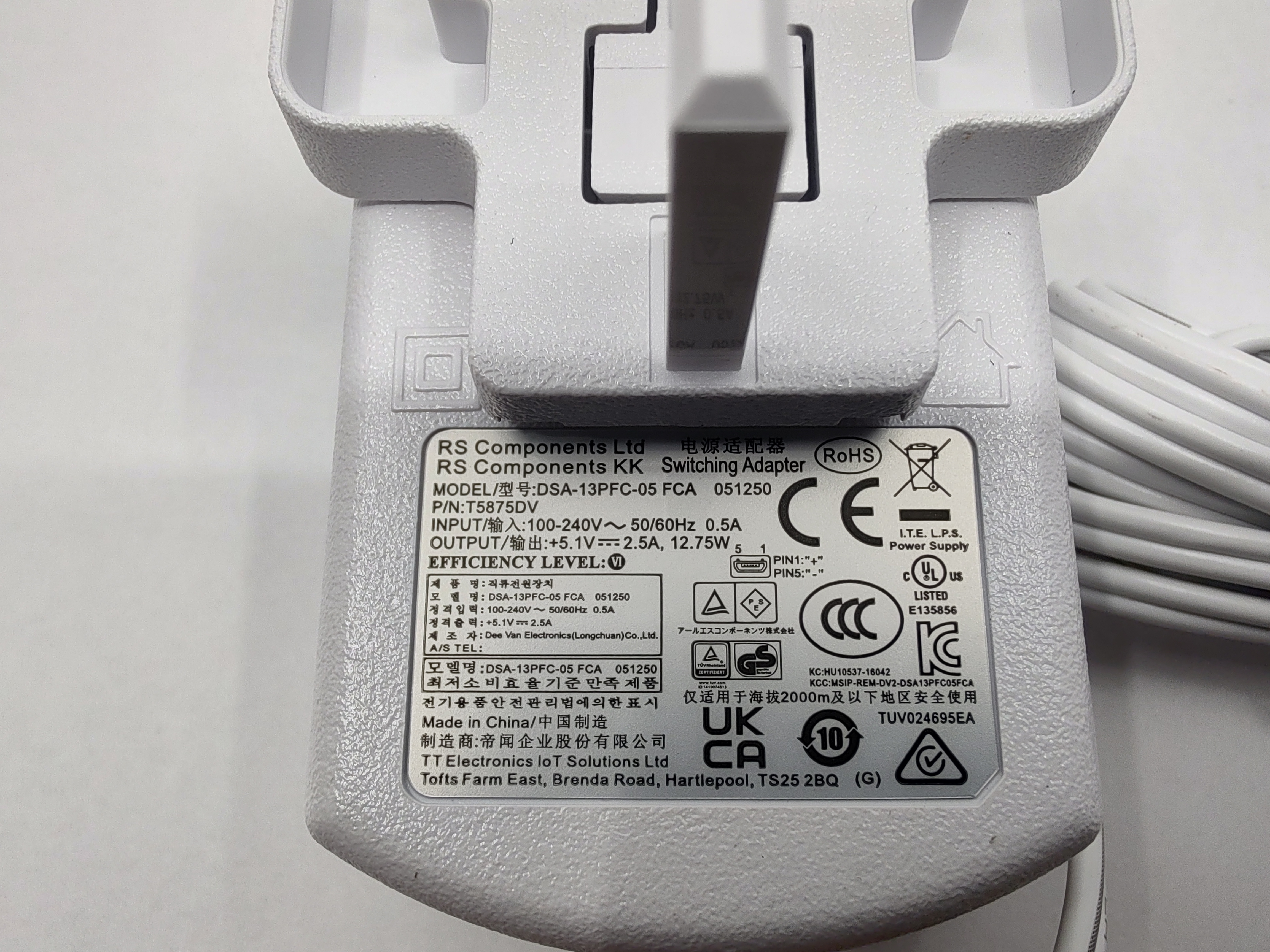 Produktinformationen "Raspberry Pi 5,1 V Netzteil, 1.5m, Weiß, USB Typ Micro B, Universalstecker, 2500mA"